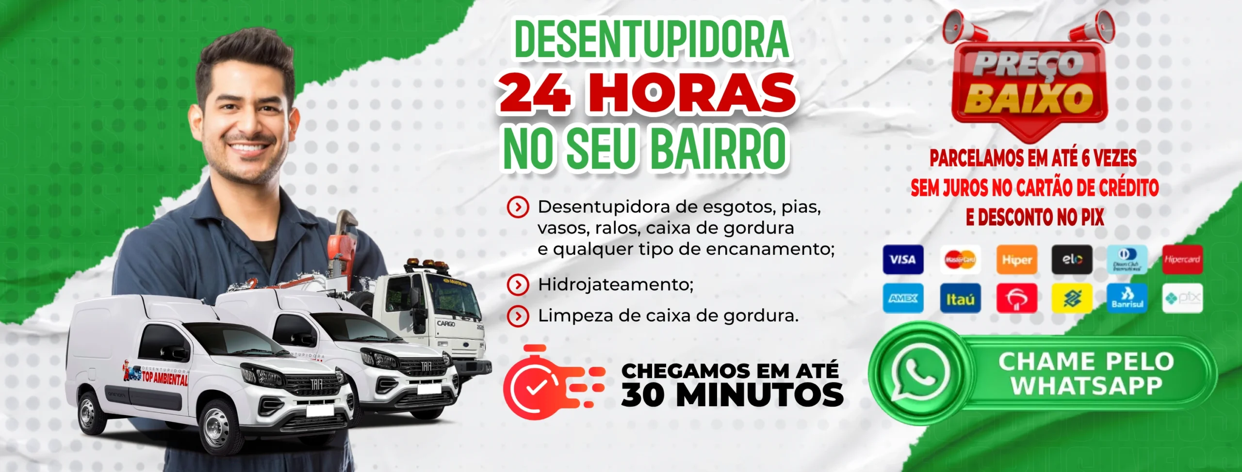 "A equipe da Top Ambiental foi extremamente profissional desde o primeiro contato. Resolveram o entupimento no meu comércio rapidamente e com muito cuidado. O serviço foi eficiente e me deixou muito tranquilo. Recomendo para todos!"